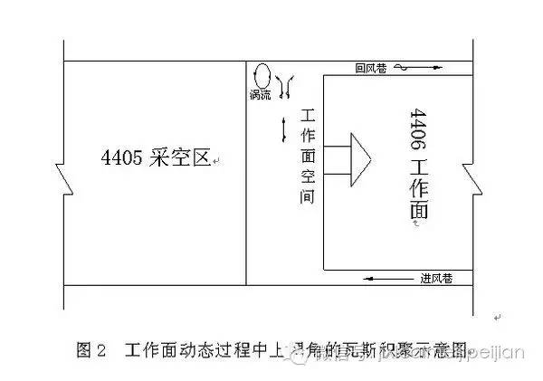 1、井生產(chǎn)過程中,采煤工作面上隅角作為采空區(qū)漏風(fēng)的交匯點和生產(chǎn)中不斷暴露的新鮮煤壁擴(kuò)散出來的大量瓦斯,在上隅角處形成渦流,造成瓦斯積聚。